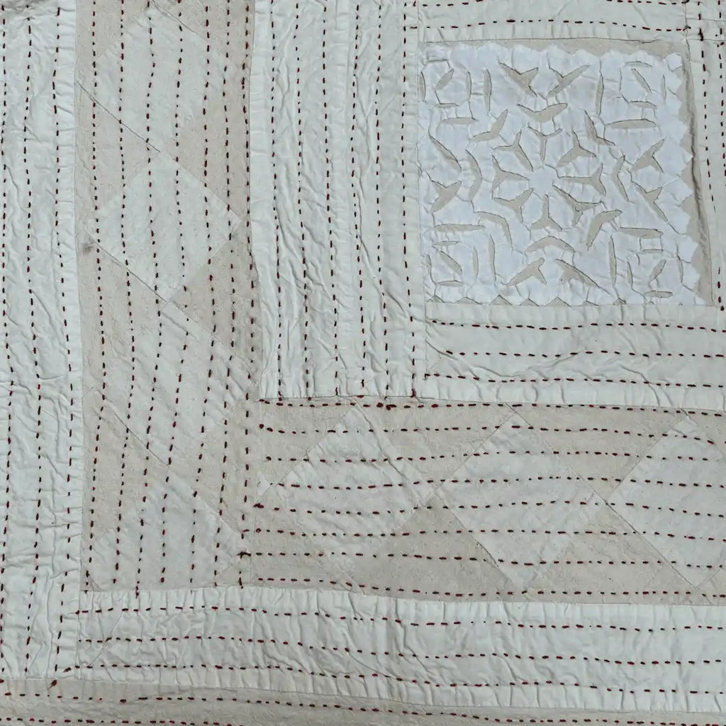 Beautiful Indian cut-work bedspreads. The face cut in papery ivory cotton fabric and backed with a lightly contrasting cream cotton, hand stitched together