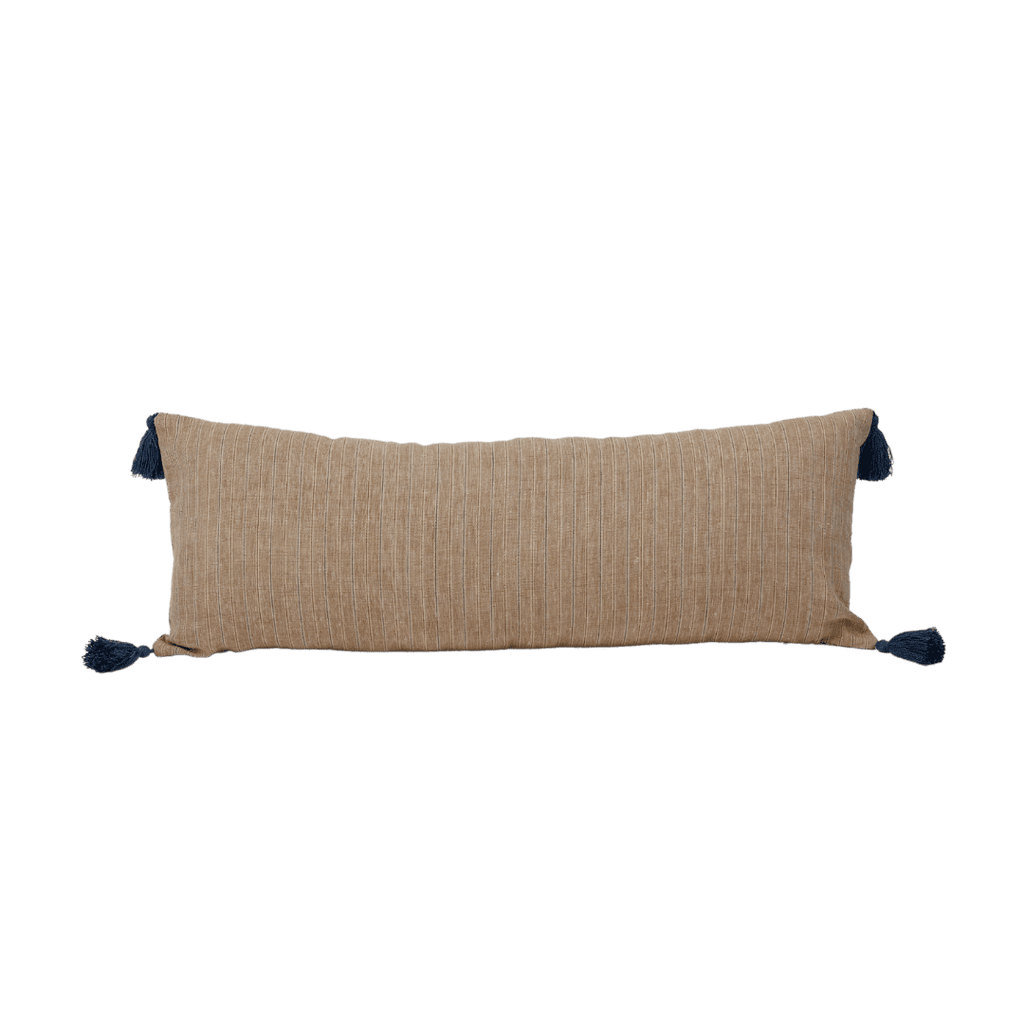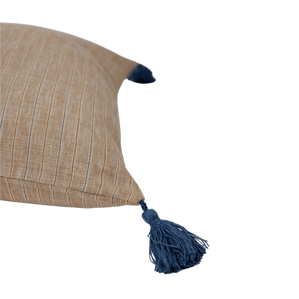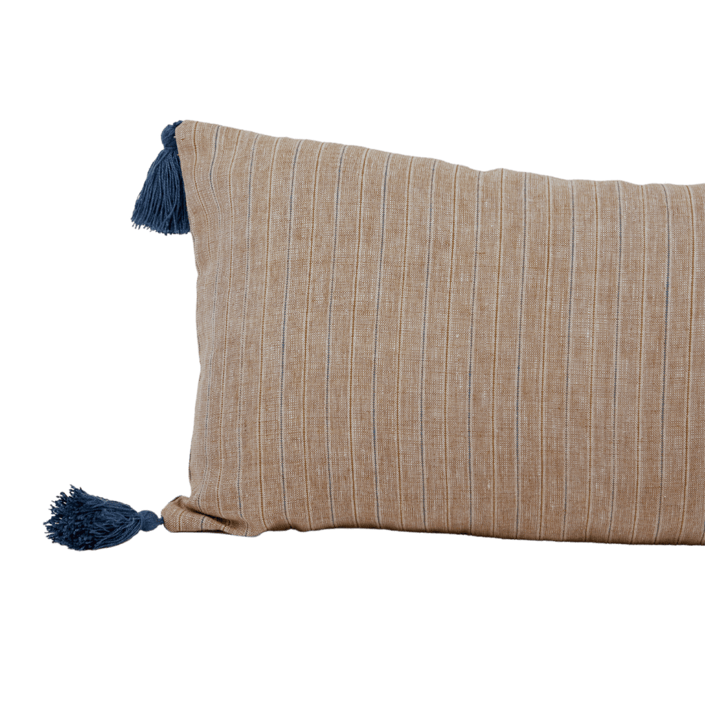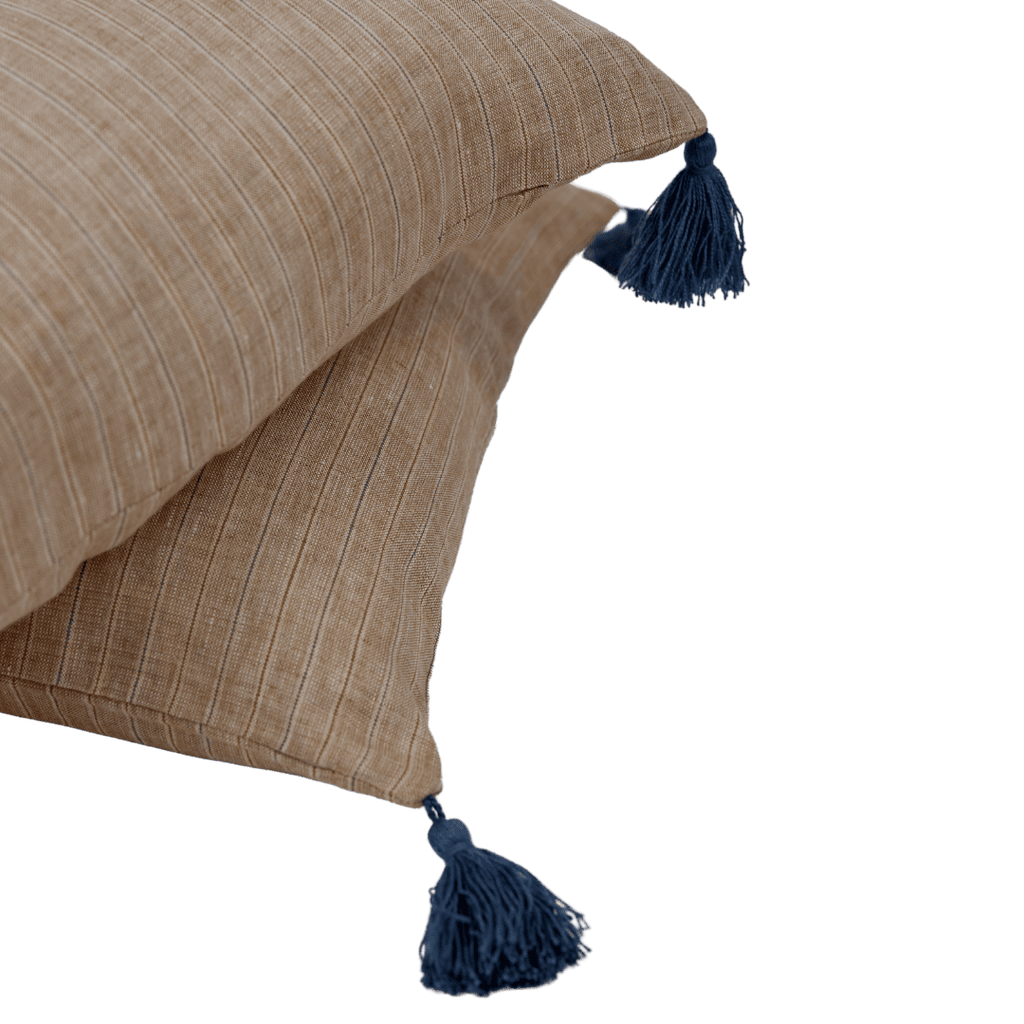 These unique cushions are made using handloom woven cotton stripe fabric, hand selected in India, finished with handmade cotton tassel details.
